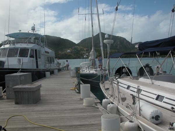 Vanish tied up behind Steadfast at the Cat Club in Antigua, awaiting some work from the Antigua Rigging crew.