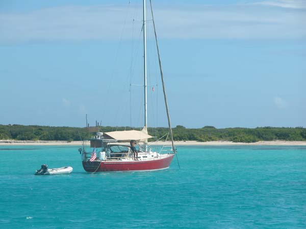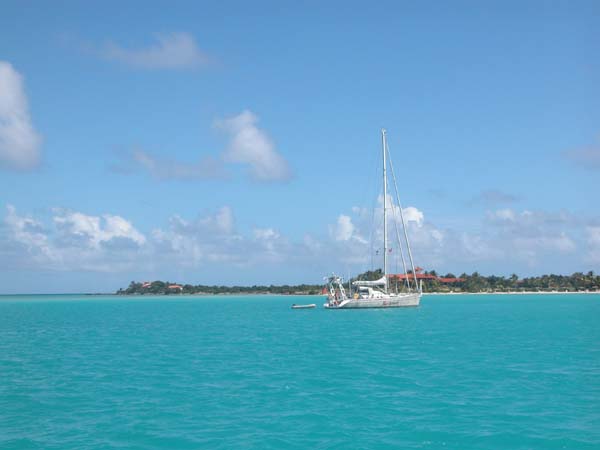 Eight Bells anchored off Spanish point on Barbuda.
