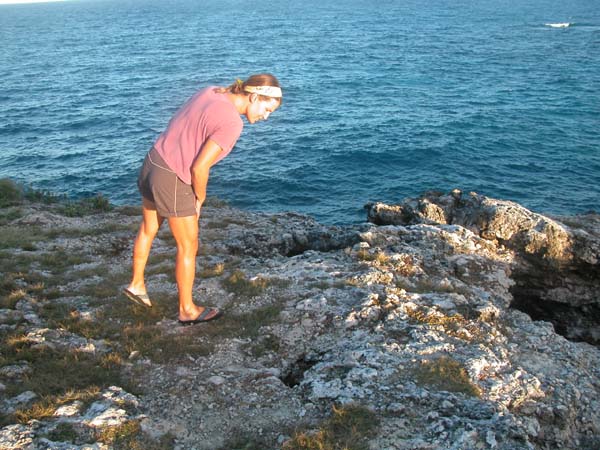 Looking at the tunnels down to the sea on Great Bird Island, Antigua.