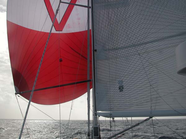 The majority of the trip we sailed wing-on-wing with a poled out genoa.