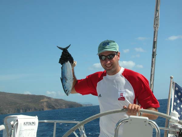 Bill caught a skipjack tuna on our way to Dominica! We grilled it when
