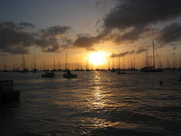 Sunset with the fleet at anchor.