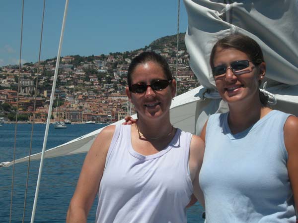 On the dock in St. Florent. Aislin and Lisa's last night with us.