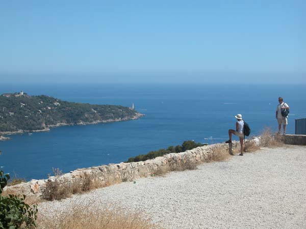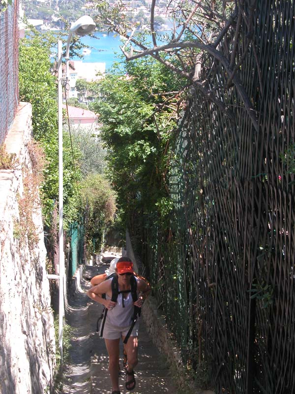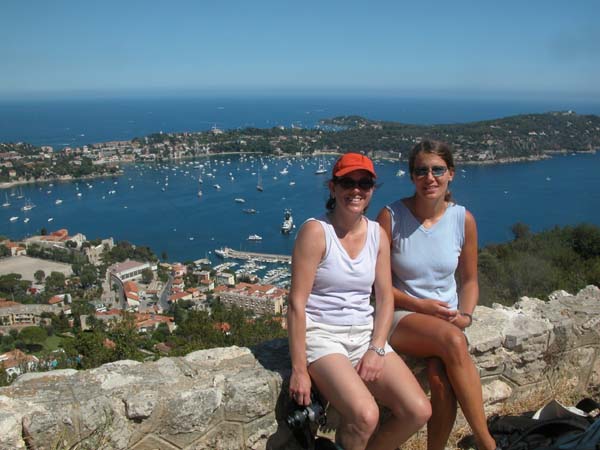 Aislinn and Renee hiking up to the castle atop Villefranche.