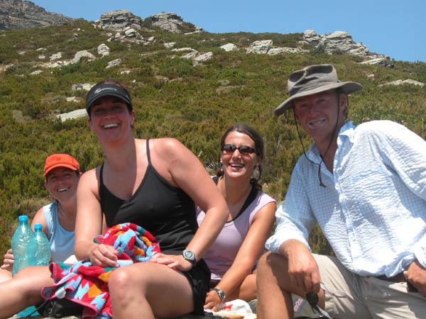 Finally a lunch break, still no shade. (Aislinn, Lisa, Renee and "Tom")