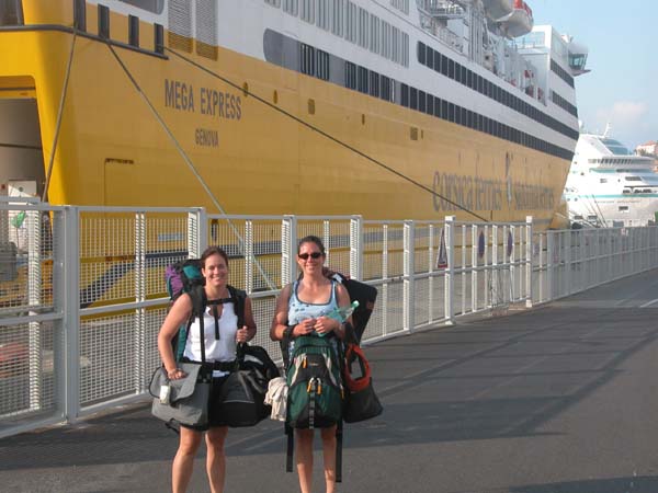 Bye Guys! Lisa and Aislinn boarding the ferry from Bastia, Corsica back to the mainland.