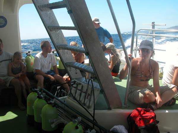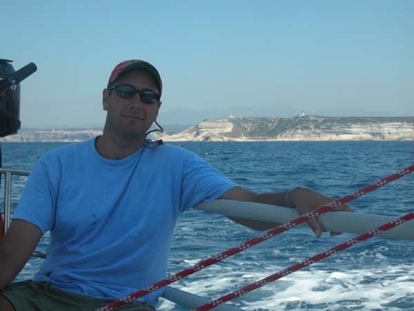 our selves. Setting off in a diving boat in the Straits of Bonifacio.
