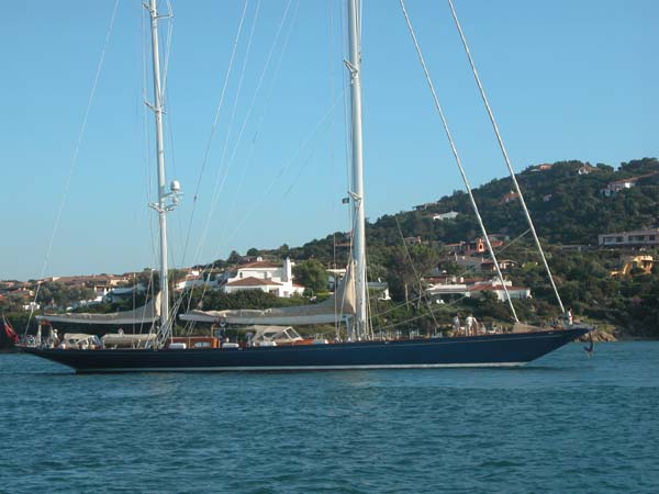 A rare, but fittingly huge, sailboat in Porto Cervo, a glitzy harbor on