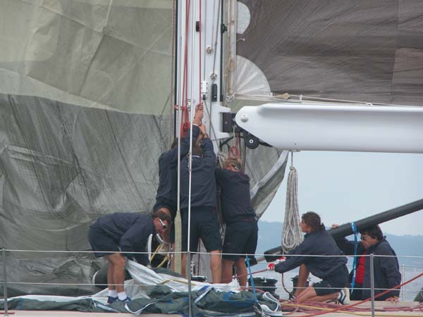 Jean-Louis, Regis and Christof during pre-race maneuvering.