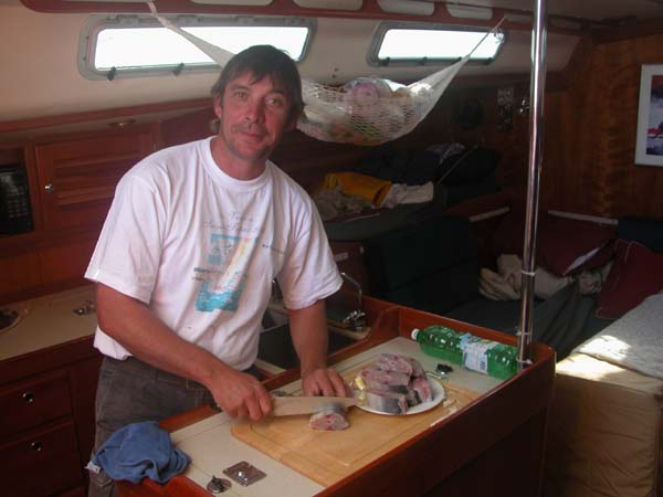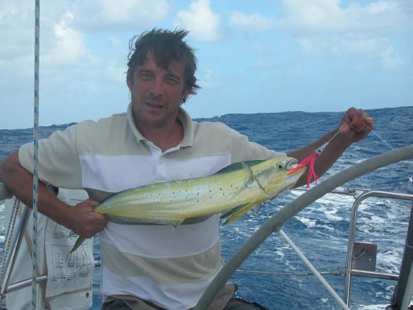 had some big fish. Here Philippe catches our first dorado.